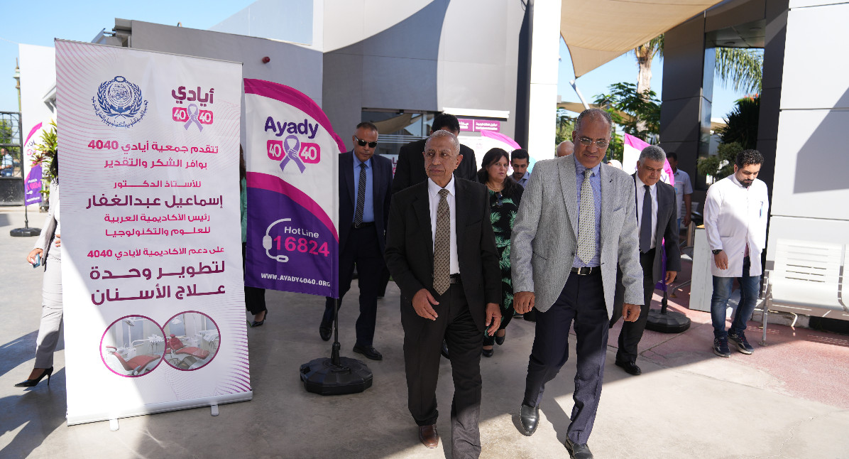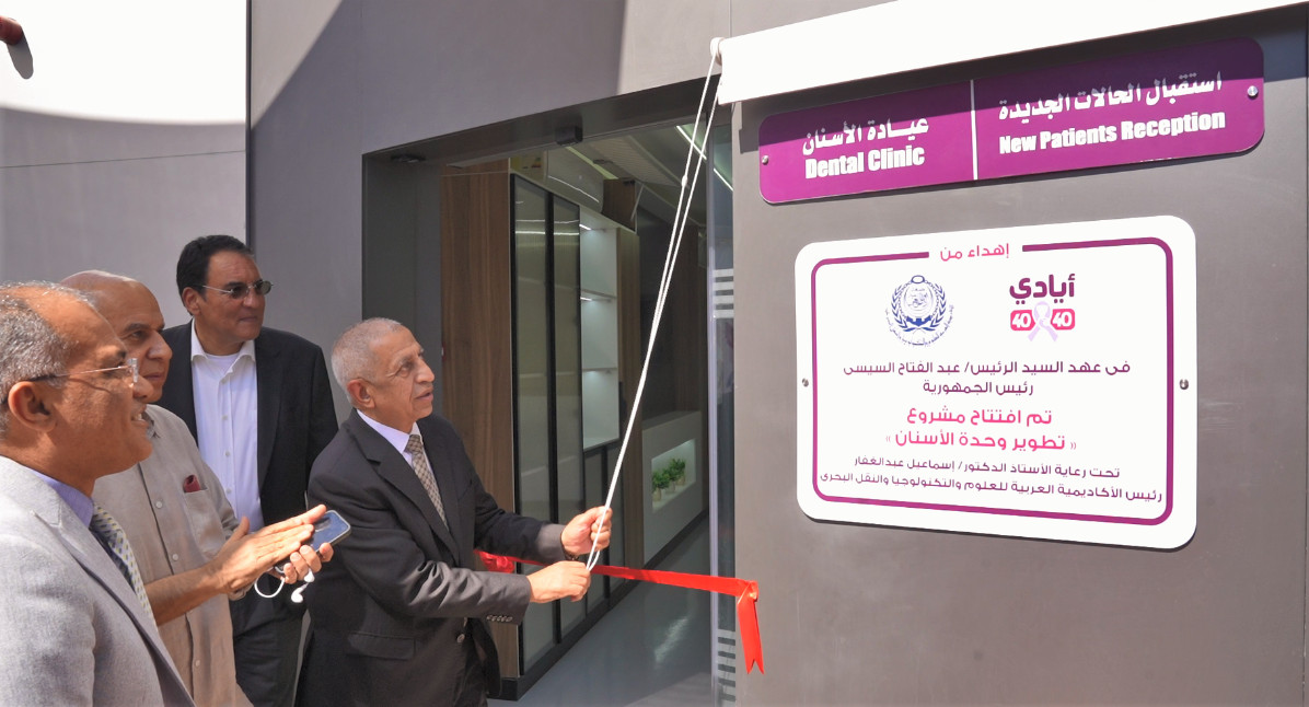 تشرفت جمعية ايادي 4040 بإستقبال الأستاذ الدكتور / إسماعيل عبد الغفار إسماعيل فرج رئيس الاكاديمية العربية للعلوم و التكنولوجيا و النقل البحري والوفد المرافق لسعادته وذلك لافتتاح عيادة الأسنان بمستشفي أيادي 4040 .حيث تم قص شريط الافتتاح إيذانًا ببدء العمل بالعيادة، التي تهدف إلى تقديم خدمات طب الأسنان وفق أعلى معايير الجودة والرعاية.